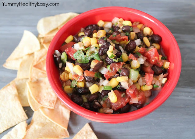 My husband has always been a chip and dip fan. I remember buying Costco size salsas and chips when we were first married and going through them at record speed. He will dip a chip in anything. He even went through a phase where he would bring plain tuna to work for lunch and dip chips into it. Yeah, okay. That’s a little strange, but I love him anyway. Ha! When I make a fresh salsa, he always gets super excited…and then eats it all before anyone else can ;). This is one of his favorites!