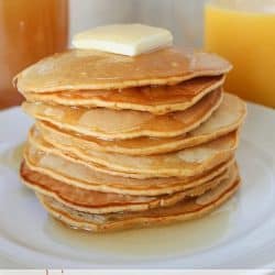 These look super yummo. I’m trying to cut refined white flour out of our diets so I’m going to try this recipe using all whole wheat. Have you tried it that way? I’m wondering how they’ll turn out. I love that ginormous stack of pancakes ~ somehow that photo makes them look so much tastier than if there were just with a couple on a plate. I’m wondering if you would be willing to share this pancake post at our Making Monday link party? We would love it and I’m sure our readers will, too. Thanks. Have a fantastic Tuesday. https://www.abrightandbeautifullife.com/making-monday-12/