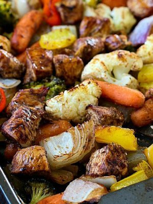 Sheet Pan Spicy Balsamic Roasted Chicken & Veggies