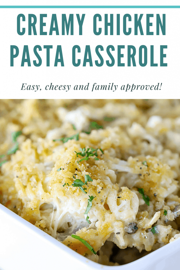 Looking for an easy, cheesy and family approved dinner recipe? You NEED this Creamy Chicken Pasta Casserole Recipe! It’s always a hit!