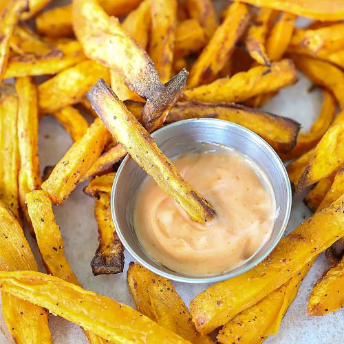 Not all air fryers heat the same. While this recipe has been tested time and time again in our air fryer, (Cosori brand) you may find different results in your own. If you haven’t made sweet potato fries in your air fryer before, it’s a good idea to start with less time per side.
