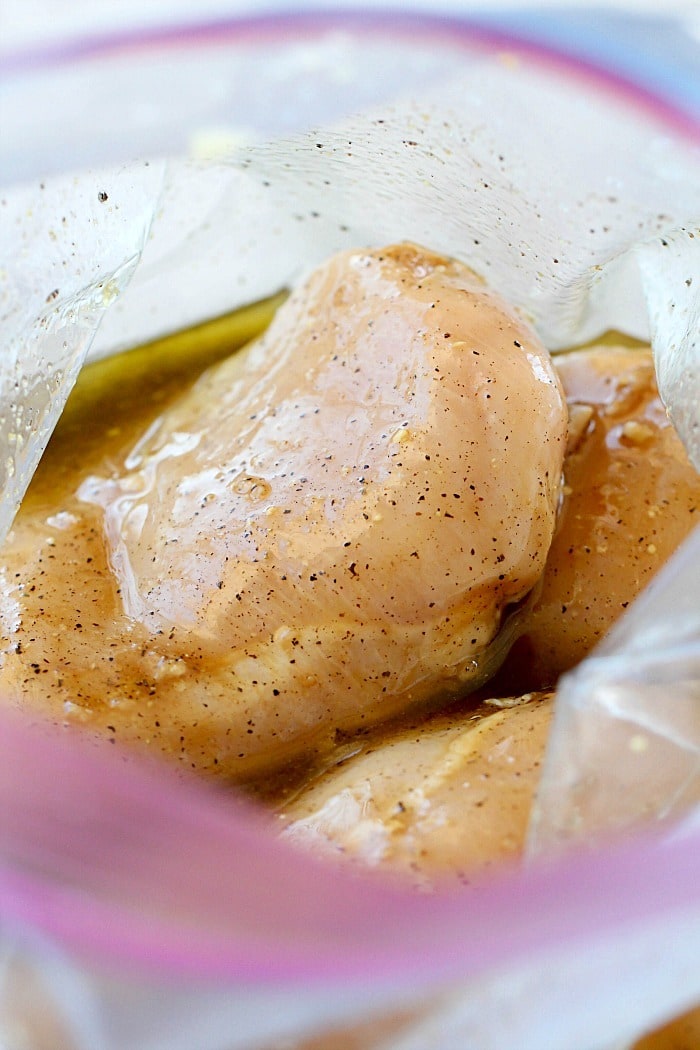 - Combine all ingredients into a large storage bag. Shake to combine all ingredients. Add chicken and marinate in refrigerator for several hours, or overnight.