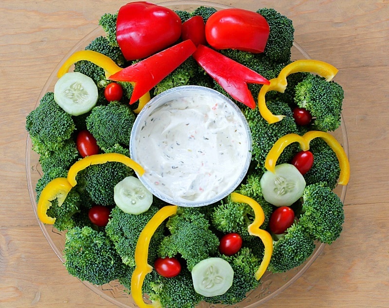 Making a Wreath Holiday Veggie Tray is easy and fun to do. To show you how to make it, I’ve created a quick video. Watch it below!
