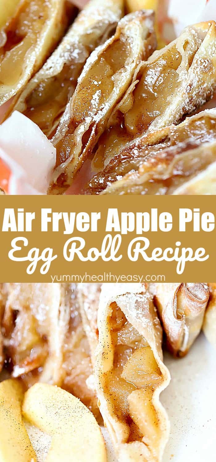 Think of the apple pie egg roll as a lumpia filled with apple pie filling. Only instead of throwing it in the deep fryer and using all that hot oil, you just fry it with the air fryer.