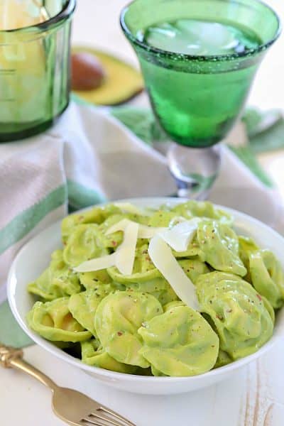 Tortellini is tossed in a creamy avocado pasta sauce for a crazy delicious and easy vegetarian dinner any night of the week!