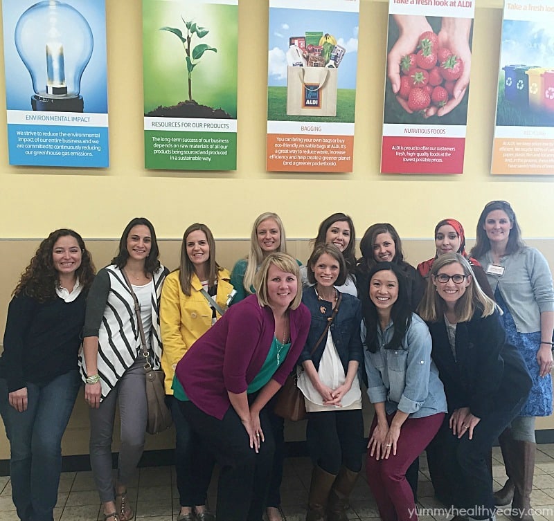 I had the honor to be invited to the ALDI headquarters in Batavia, Illinois the other weekend. I had a ridiculously good time! I met some new blog friends and ate some a LOT of yummy food. How cute are we, standing near the checkout in the ALDI store we visited?