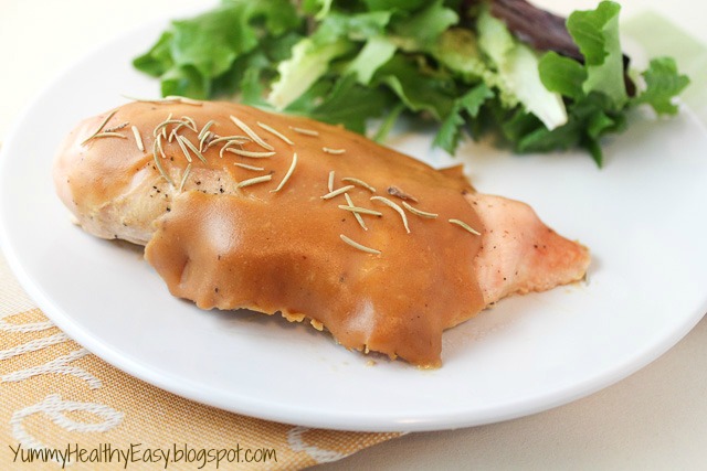 3. Bake for about 30-40 minutes, or until chicken reads 165 degrees with a meat thermometer. Season with rosemary and VIOLA! Delicious, healthy, home cooked meal!